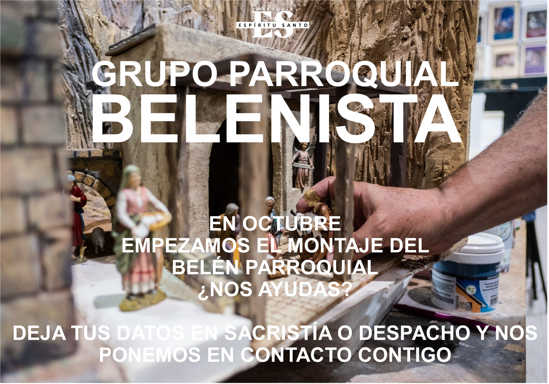 Estamos a punto de empezar el montaje del gran Belén Parroquial y, como todos los años, necesitamos mucha ayuda: pintura, electricidad, decoración, figuras, plantas, limpieza, y mano de ora en general.